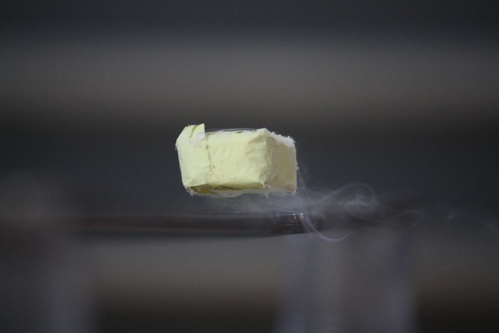 Pouring liquid nitrogen, showing nitrogen steam and nitrogen beads. This is an example of the Leidenfrost effect where a liquid in contact with a surface significantly hotter than the liquid's boiling point produces an insulating vapour layer which prevents the liquid from boiling rapidly. This effect can also be seen if water is poured on the rings of an electric cooker.