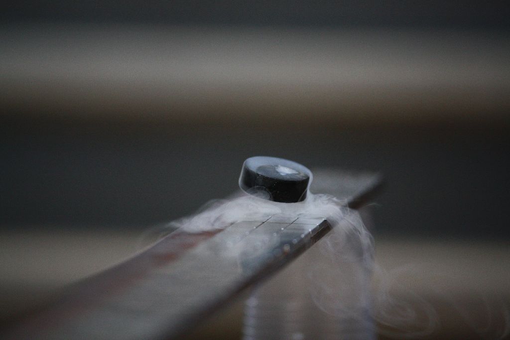 Shattering a rubber hose frozen with liquid nitrogen to -196°C.