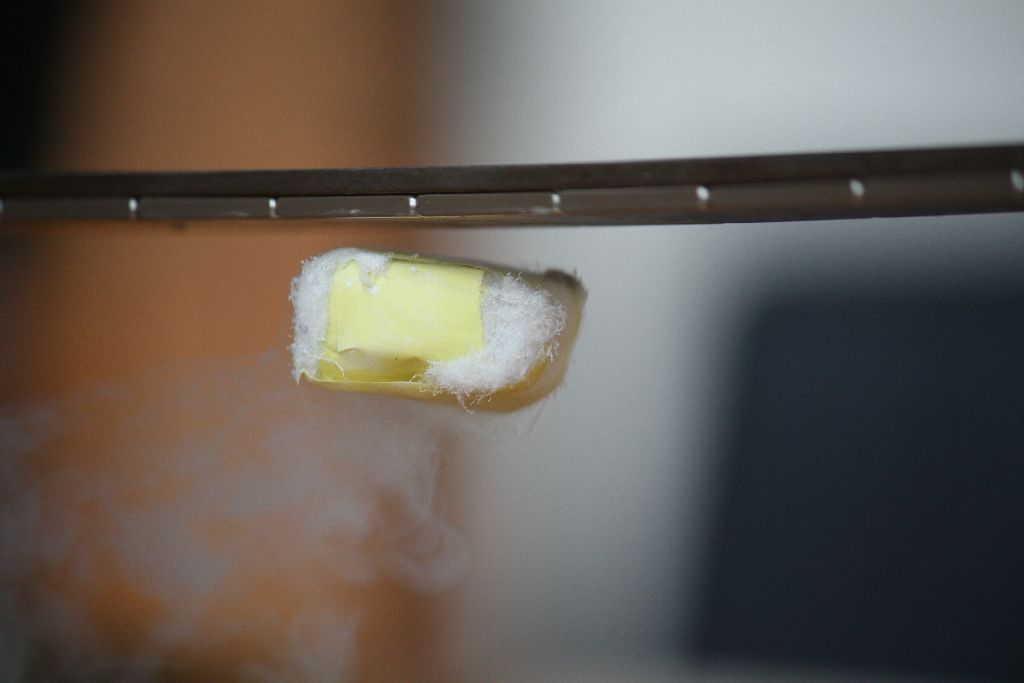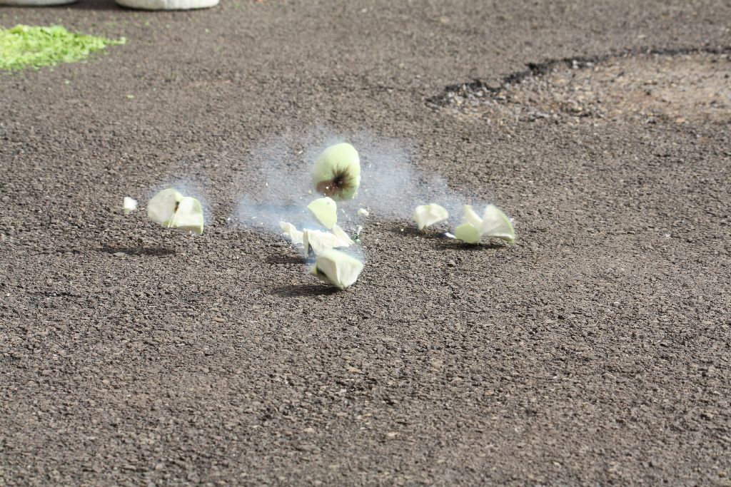 Shattering an apple frozen with liquid nitrogen to -196°C.