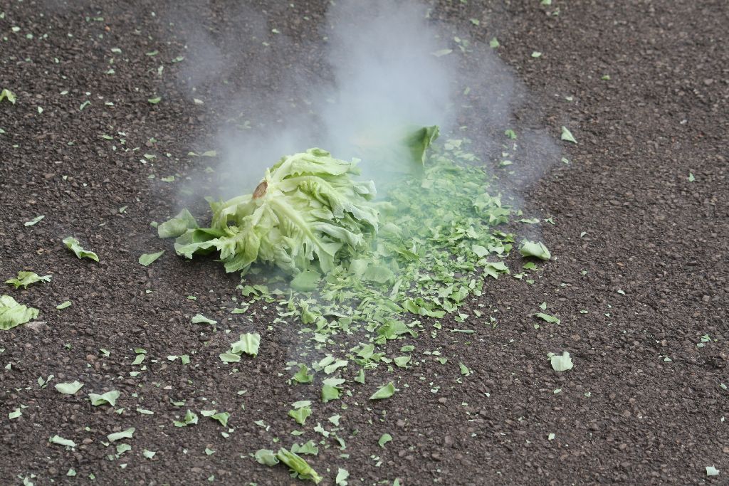Shattering of a lettuce frozen with liquid nitrogen to -196°C.